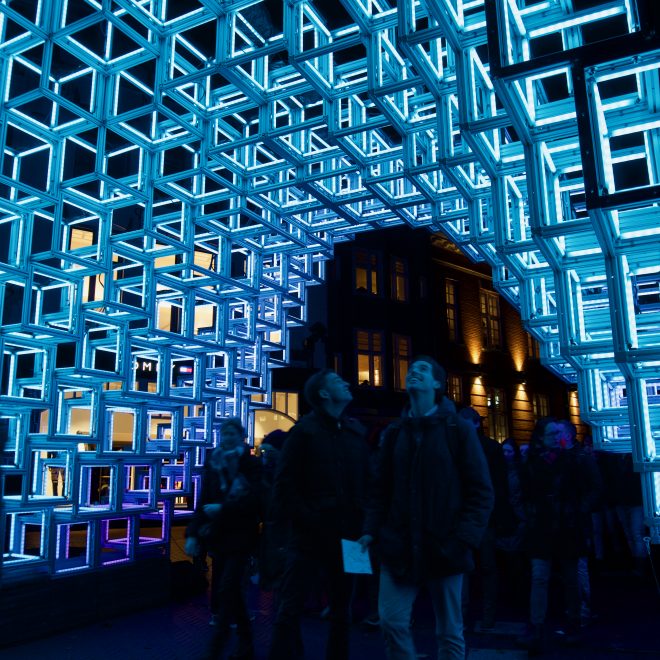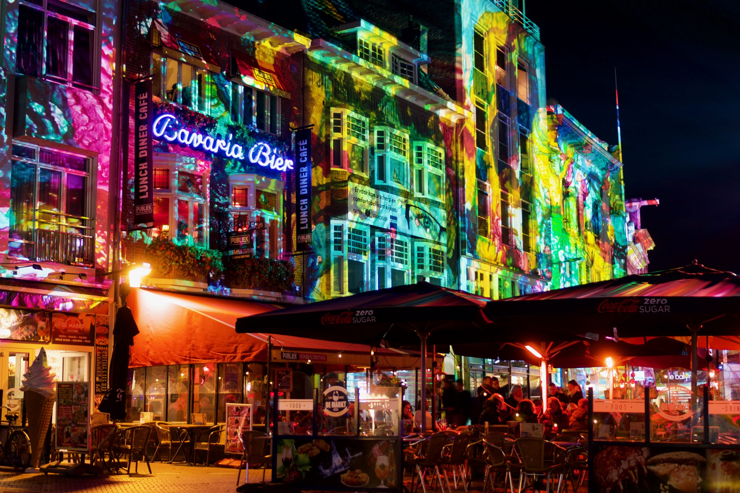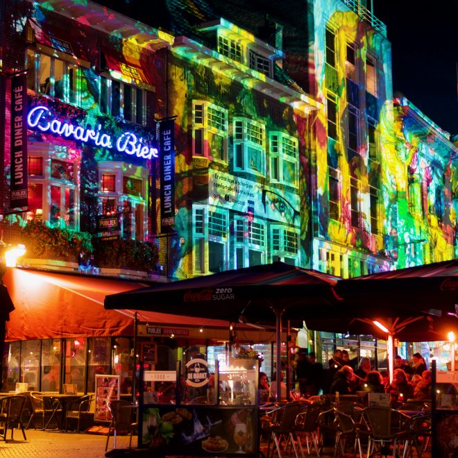 Every year there is a special light event in Eindhoven, called Glow. Artists have made beautiful light projects in the center of Eindhoven. Most of the light art is projected on popular buildings of Eindhoven.